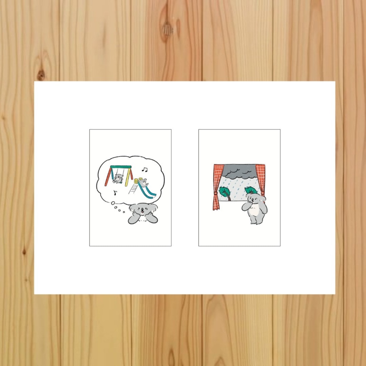 ・「公園で遊びたいです。でも雨が降っているので遊びに行けません。」